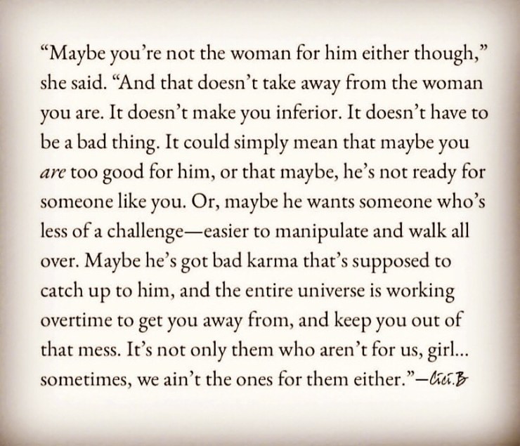 So…are you TOO GOOD? Hell yes! Don’t forget that. You are too good to settle. Too good to ignore red flags. Too good to wonder if he will call or text. Too good to be a pawn in his games. Too good to not realize that the universe has parted the sea to allow us to walk through and find our way to something better. And when that better comes along, you will thank your lucky stars that what you had wished for never happened. He was not ready for you, you were not worthy for his childish ways so the universe bestowed upon you unanswered prayers… that is until the right one comes along.